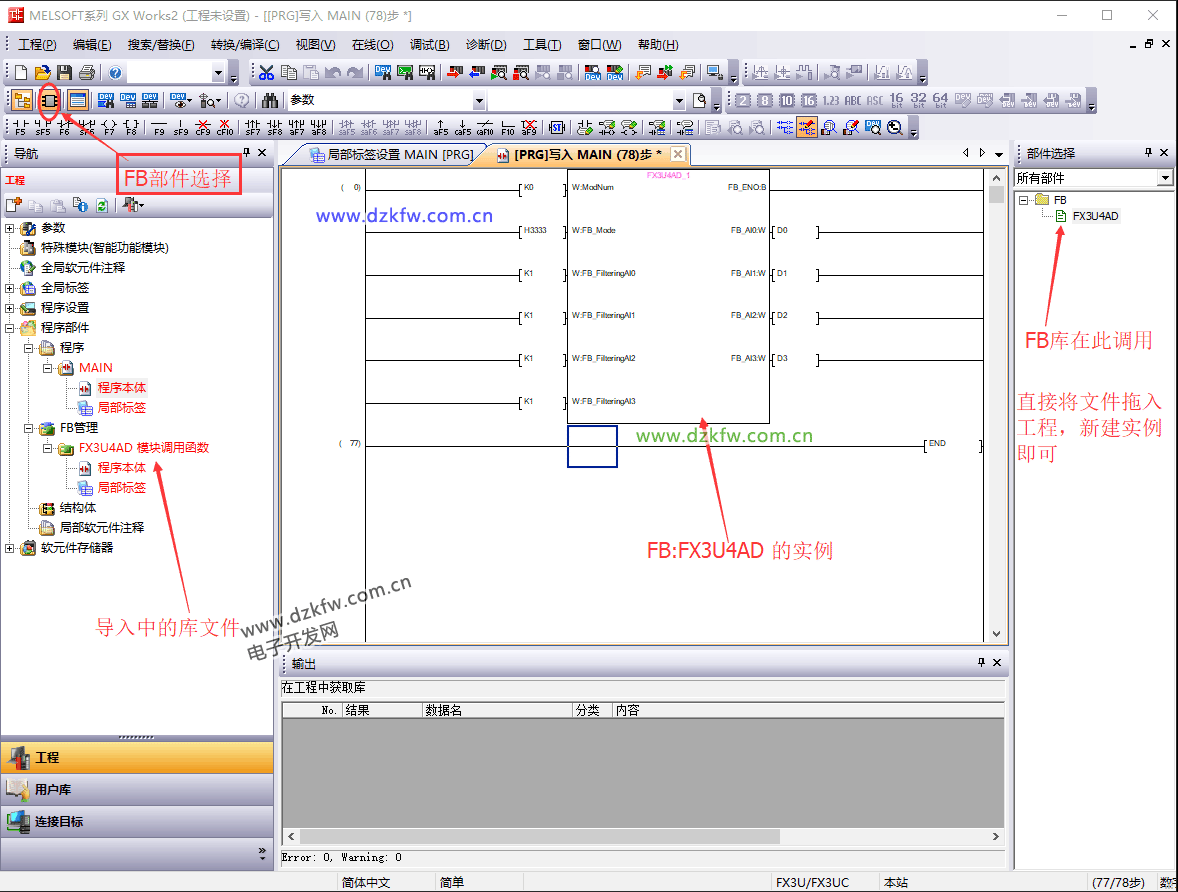 FB库函数调用方法 (Gx Work2版本)FB功能块调用,本文以 Gx Works2 软件为例