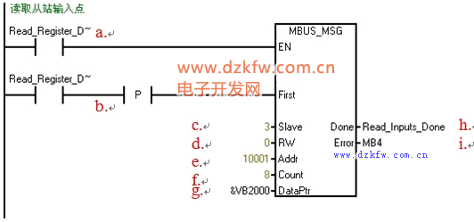 调用 Modbus RTU 主站读写子程序MBUS_MSG,发送一个Modbus 请求;