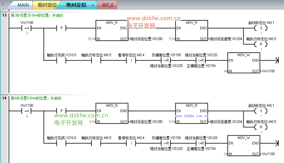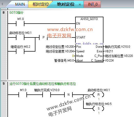 调用轴初始化指令和调用绝对定位、相对定位的子程序