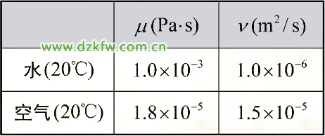 是流体的动力粘性系数,表示相同变形率时的粘性大小:    是流体的运动粘性系数,代表的是流体具有相同加速度时粘性大小: 可以比较水跟空气的粘性系数,可以看出水的粘性系数比空气大得多,但运动粘性系数更小,那两个粘性哪个更大?如果一个物体以相同速度在水或空气中运动,肯定水的阻力大,但这种阻力大的主要原因是水的密度大,按照相同加速度来比较合理。如果只考虑流体自身的运动,应该关注的是运动粘性系数。正因为水与空气的运动粘性系数相差不大,流体力学中某些现象本来是在空气中,却可以在水中实验。