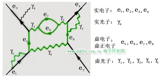 为了更好地说明问题,物理学家将上述这段话和复杂的数学表达式,用一句既简洁直观又符合费曼图的说法来表达,即“两个电子交换了一个虚光子”!