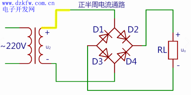 常见的是整流二极管和晶闸管。几乎所有的家用电器和电脑中都有整流器,安装在电器的电源中。如下图所示是桥式整流电路的原理示意图,将交流电转换成直流电。