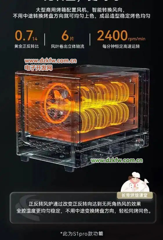 特点:内部温度均匀,能在高温下将食材内外都烤熟,适合多种烹饪方式,如烘焙、烤制、加热、解冻等。
