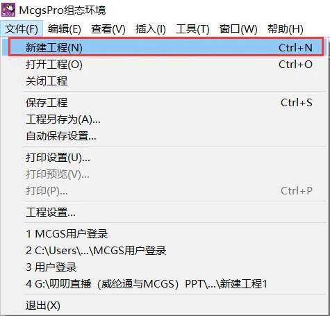 第一步:(在桌面打开Mcgs Pro组态软件)