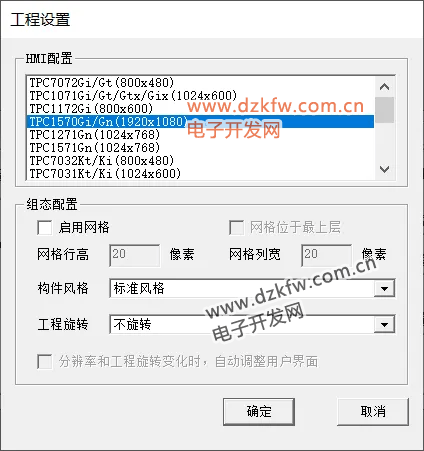 选择你实际的触摸屏型号或需要仿真的触摸屏型号