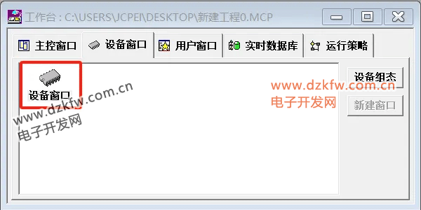 第四步:(打开工作台—设备窗口—鼠标双击设备窗口)