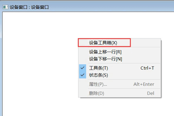 第五步:(打开设备窗口鼠标点击空白处并右击选择设备工具箱)