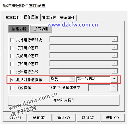 操作属性-勾选数据对象值操作-选择取反-点击问号关联对应符号。