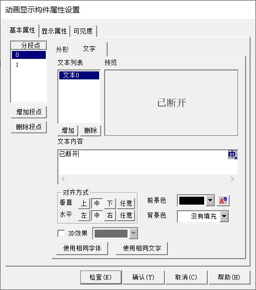 工具箱-动画显示-基本属性-文字选择0和1状态对应的文字