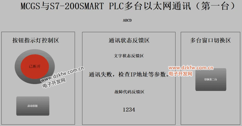 昆仑通态触摸屏是一款很好用的人机交互触摸屏,通常用的是昆仑通态MCGS与西门子S7-200SMART PLC以太网通讯,都是单个单台之间的通讯,如果是多台PLC该如何进行通讯呢?下面就带大家来实现一台昆仑通态MCGS触摸屏如何和两台及以上S7-200SMART PLC进行以太网通讯控制。