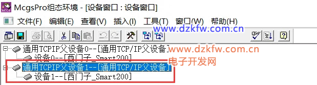 第九步:(设备工具箱—设备管理—鼠标依次点击通用TCP/IP父设备—西门子_ Smart200到设备窗口里面去)