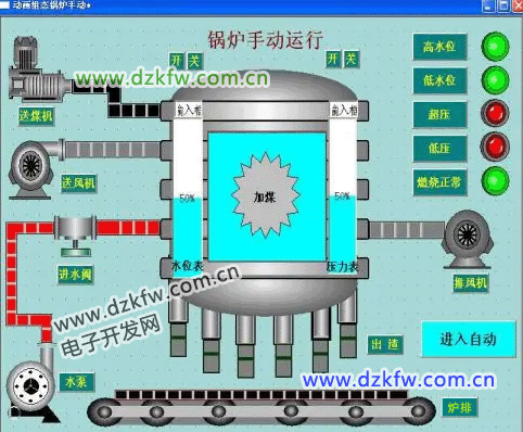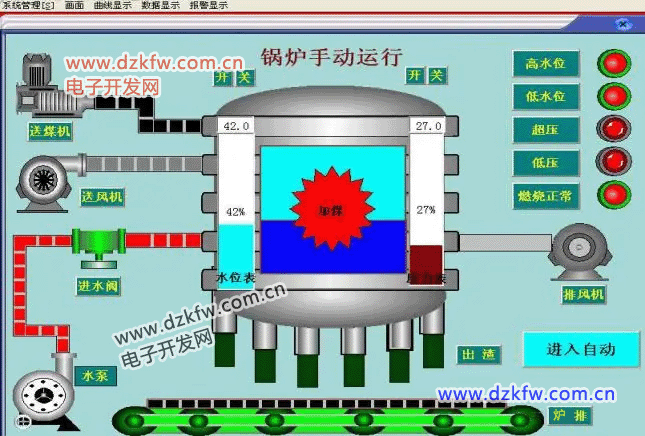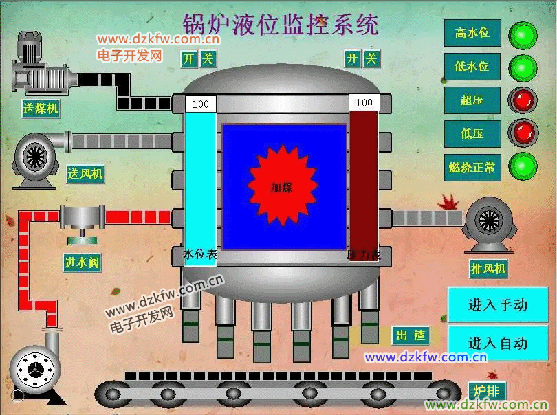 4.送风机、排风机、上煤、出渣、炉排,可以手动或自动控制。