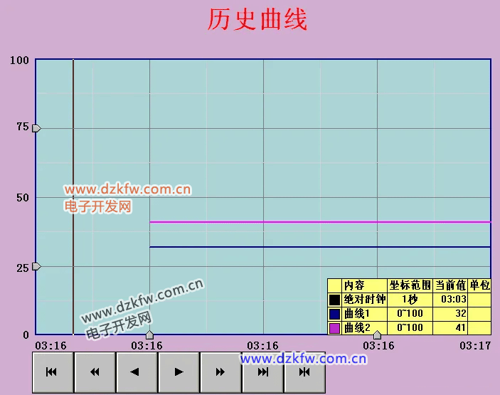 在实际生产控制过程中,对实时数据、历史数据的查看和分析是不可缺少的工作。但对大量数据仅做定量的分析还远远不够,必须根据大量的数据信息并画出曲线,分析曲线的变化趋势并从中发现数据变化的规 律,同时曲线处理在控制系统中也是一个非常重要的部分。