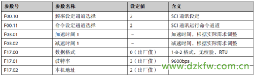 05设置变频器参数F00.10设置为2(频率通信给定2)