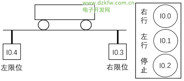 送料小车在运行最左端装料,经过4s后,装料结束,小车向右运行,在最右端停下卸料,4s后反向向左运行,到达最左端后,重复以上动作,以此循环自动运行。