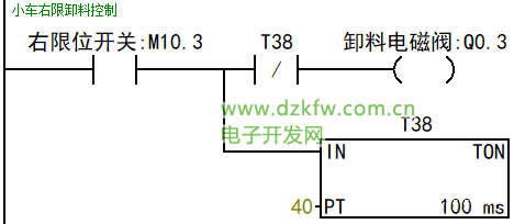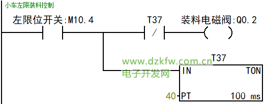 第五步:(小车到达左限位开始装料4s后向右行走)