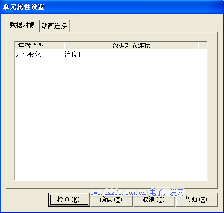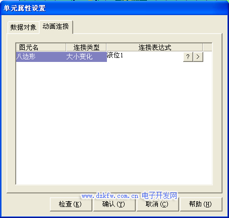 对应工程样例中的图形控件进行动画属性设置如下 在用户窗口中打开循环水控制系统窗口,选中水罐1双击则弹出单元属性设置窗口。如图3-12所示。打开单元属性设置窗口中的动画连接选项选择中折线则会出现