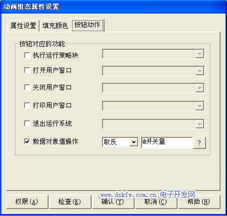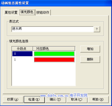 进水阀的动画组态属性设置中,可以在“属性设置”调入进水阀其他的属性设置窗口,如图3-18所示。