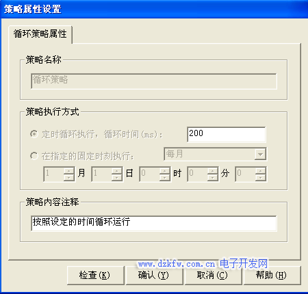 图标进入“策略属性设置”,如图3-44所示。只需要把“循环时间”设为 200ms,按确定即可。