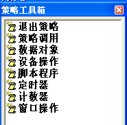 3.在策略组态中,如果没有出现策略工具箱,请单击工具条中的“工具箱”