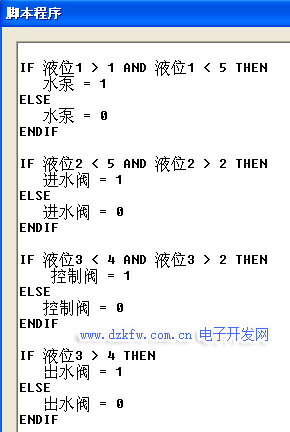 IF 液位3 > 4 THEN出水阀 = 1 ELSE 出水阀 = 0 ENDIF