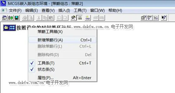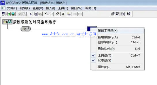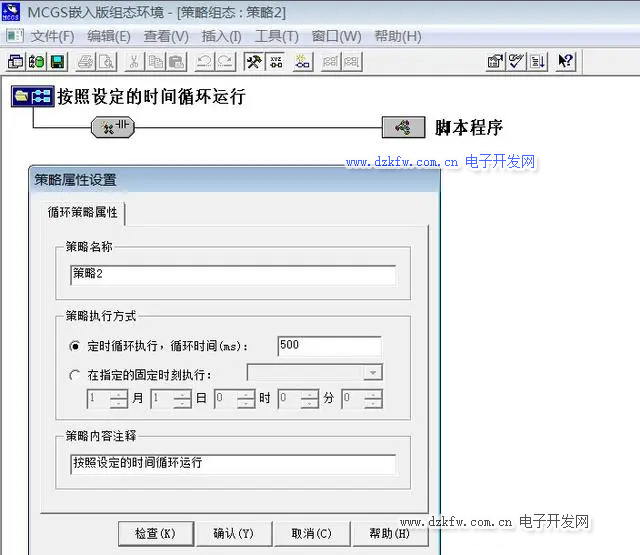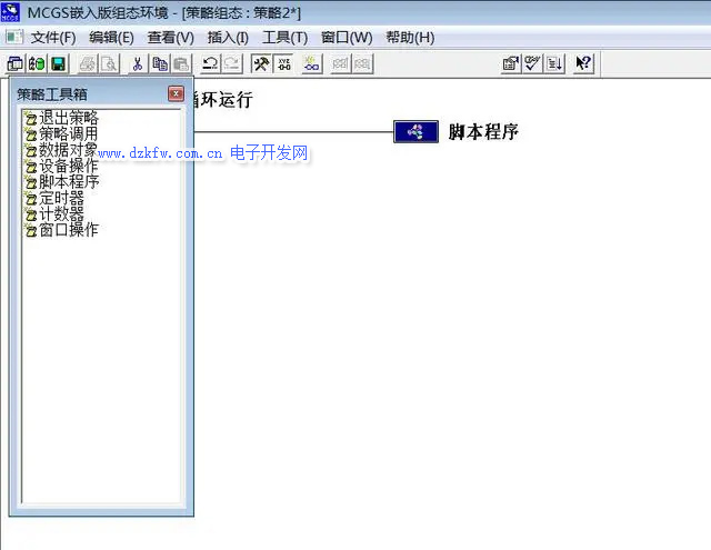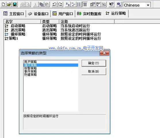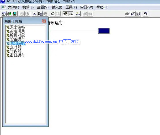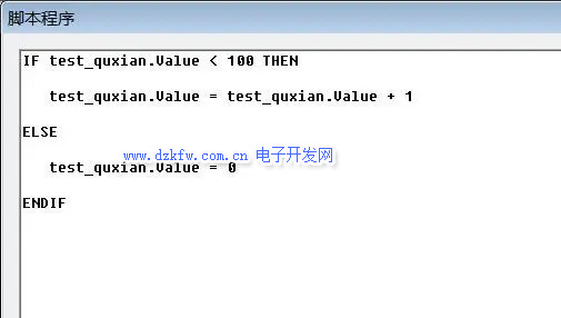 2、在运行策略中新建一个循环策略,通过脚本来实现“test_quxian”变量的数值变化,变化范围为0--100。