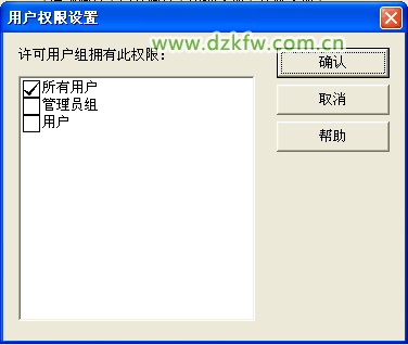 作为默认设置能对某项功能进行操作的为所有用户。如果不进行权限组态,则权限机制不起作用,所有用户都能对其进行操作。在用户权限设置窗口中,把对应的用户组选中(方框内打勾表示选中),则该组内的所有用户都能对该项工作进行操作。注意 一个操作权限可以配置多个用户组。