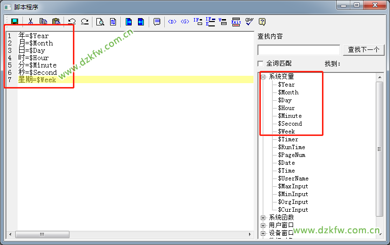 以上赋值语句,年月日时分秒是指PLC地址,等于号后面MCGS系统时间函数变量
