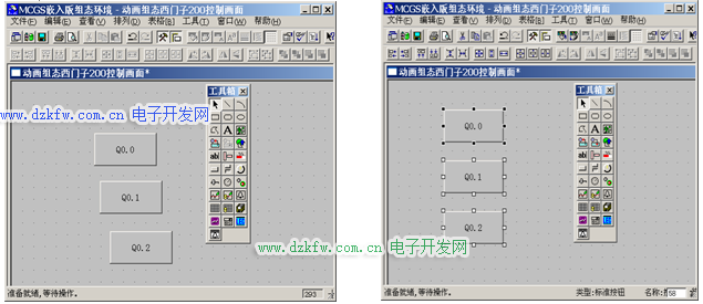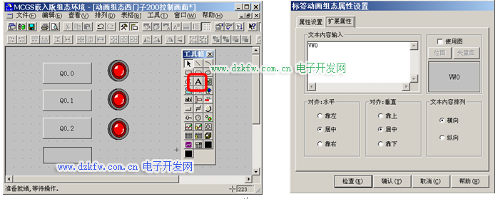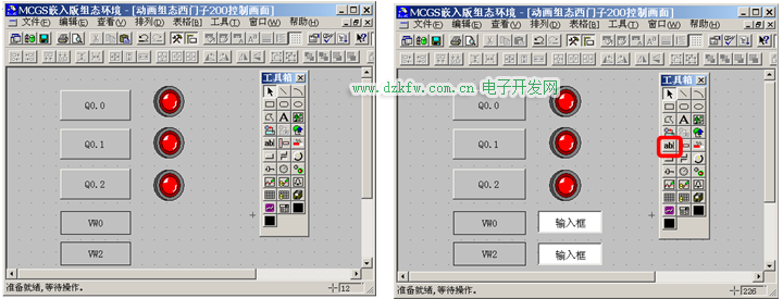 本节通过实例介绍MCGS嵌入版组态软件中建立同西门子S7-200通讯的步骤,实际操作地址是西门子Q0.0、Q0.1、Q0.2、VW0和VW2。