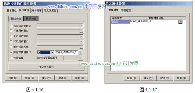 同样的方法,点击“按下功能”按钮,进行设置,数据对象值操作—>置1—>设备0_读写Q000_0,如图4-1-16。