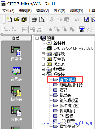 三、组态触摸屏及PLC串口参数第一步:(在编程软件系统块中打开通讯端口设置)