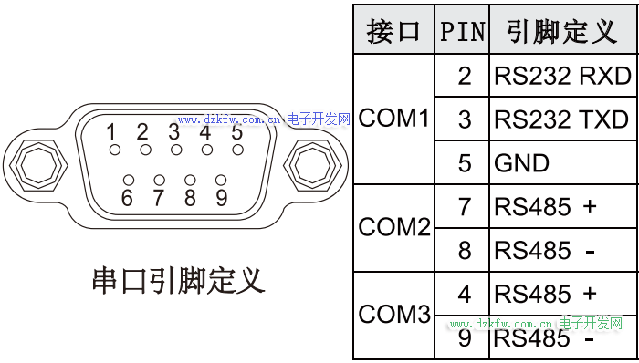 温馨提醒:这里的串口端口号不是指PLC,而是指触摸屏本身端口号,具体如何选择正确的端口号,参考下图串口引脚定义的含义,每款触摸屏可能有所不同,具体还得看个人触摸屏型号及说明书上的接口说明再做选择。