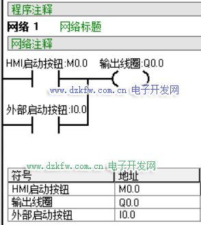 第一步:(编写可通过PLC外部按钮启动和触摸屏画面按钮启动)