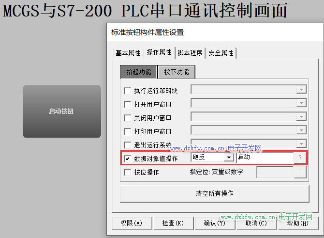 MCGS触摸屏按钮启动:M0.0输入点
