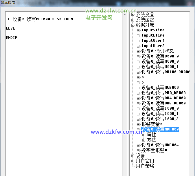 • PLC变量是指实时数据库中的变量,例如,我们现在想让PLC里的内部变量MD0 = 50,我们应该这么操作