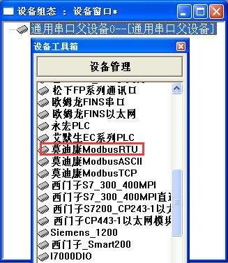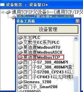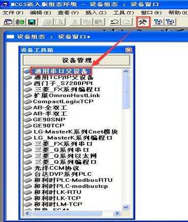在文件>新建项目选址设备并确定,在弹出的窗口选址设备窗口,双击设备窗口