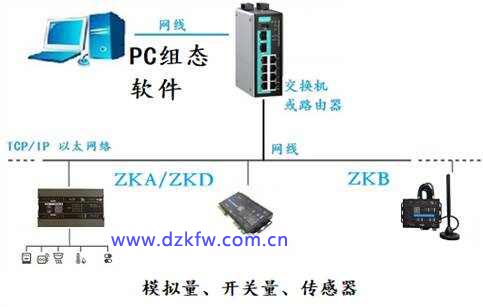 以 ZKA-4088-ETH为例说明 DI\DO\AI\AO如何接入MCGS使用,ZKA-4088-ETH 为8路数字量输入(DI)和 8 路数字量输出(DO)以及4路模拟量输入(AI)采集控制设备,采用标准的 Modbus TCP 通讯协议,可以通过 TCP/IP 网络远程采集模拟量数据。