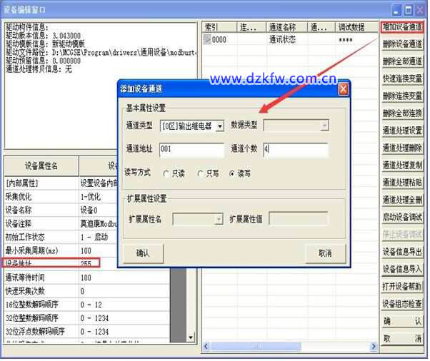 (注意:我们模块出厂时默认端口为10001,客户也可以通过ZK模块的配置文件把ZK通讯端口改成modbus-tcp的默认端口502)
