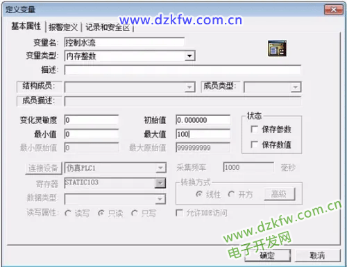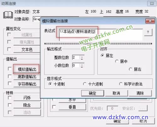 所谓“动画连接”就是建立画面的图素与数据库变量的对应关系。