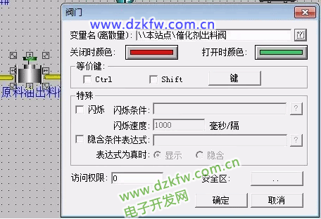 当系统运行时,单击次阀门,变成绿色,再次打击关闭阀门,从而达到关闭阀门的目的。