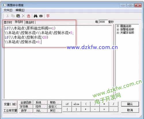 定义内存整形变量,选择“矩形”工具,组合图素,设置命令语言;