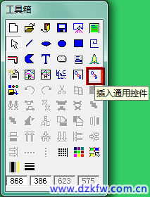 打开组态王画面,在工具箱中找到插入通用控件,如下图所示: