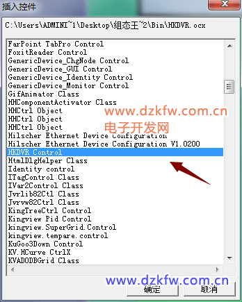 打开控件选择界面,找到HKDVR Contrl,如下图所示: