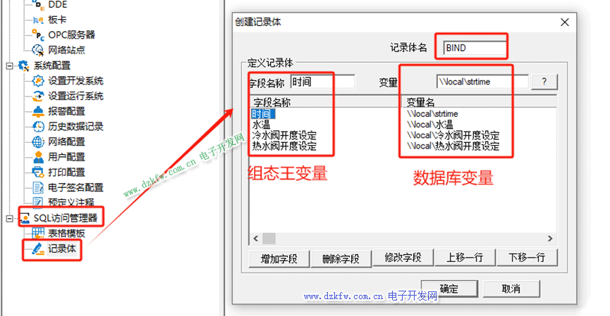 1、组态王创建记录体如下图