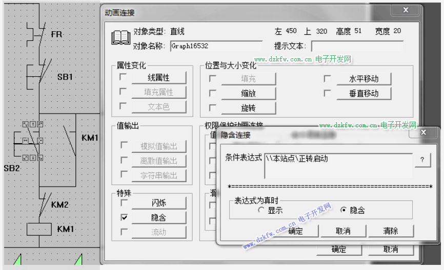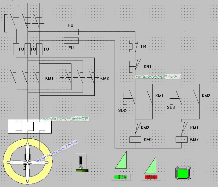 2 、画出电动机的正反转控制电气原理图,并且以组态王的动画形式表现。