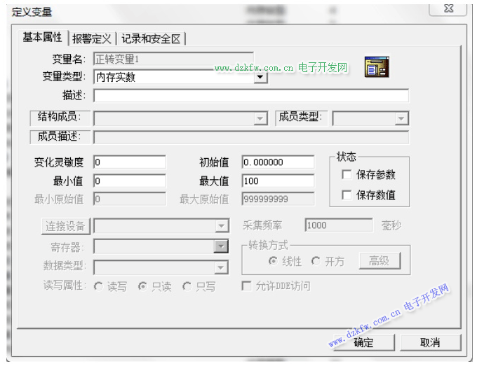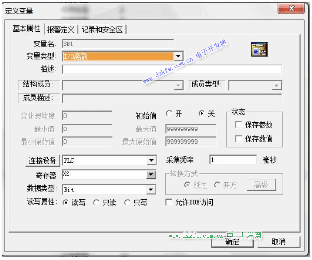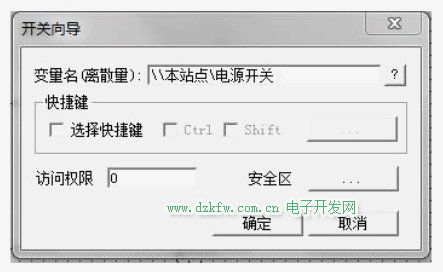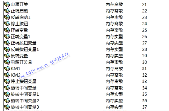 其中开关与PLC相连的变量设置比较特别: