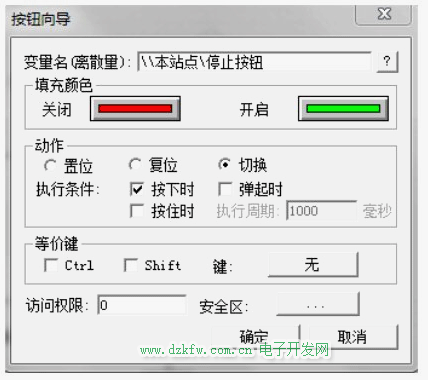 下图是画面中开关的设置,与变量连起来: