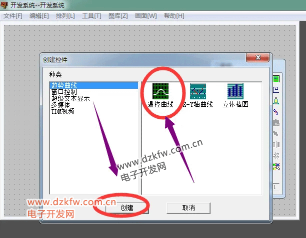 在弹出的创建控件中选择【温度曲线】并点击确定