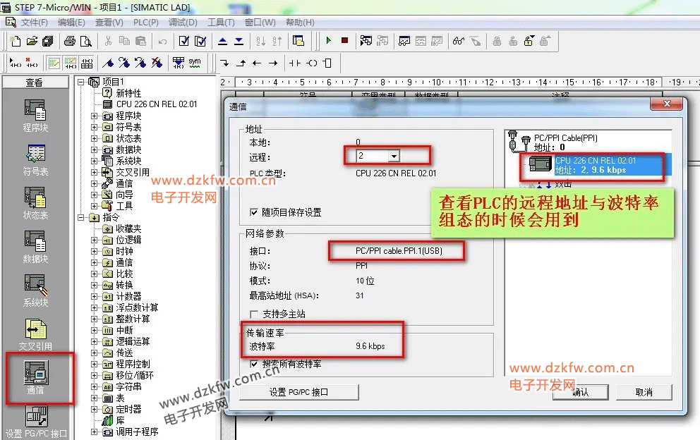 查看PLC的远程地址与传输速度,组态的时候会用到。