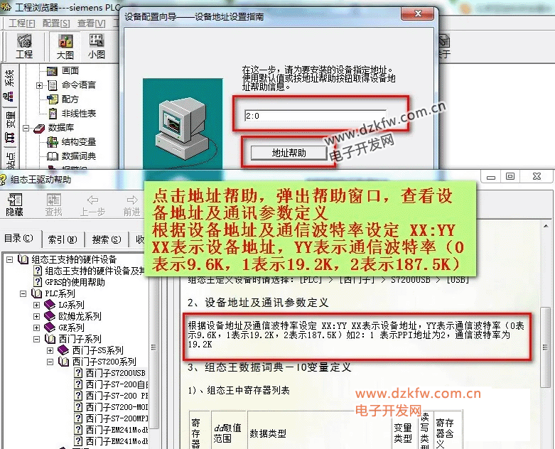 由第2步可知道,当前PLC的地地址为2, 波特率为9600